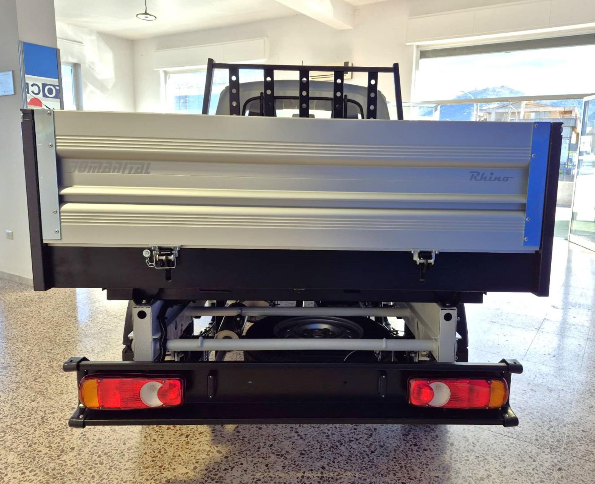 N°01 Autocarro Romanital - mod. RHINO Versione RPB2 - Cassone Ribaltabile Posteriore - Cabina colore bianco, alimentato Benzina., motore 1.512cc DOHC (Bialbero) 16 valvole, Euro 6E, potenza 76 KW, Passo 2.690 mm. - P.T.T. 2.220 Kg., completo di accessori in uso e dotazione, autoradio Misure Pneumatici 175R14LT - Hill Older. Servosterzo Elettrico, n.2 Air Bag; Aria Condizionata; ABS EBD; Paraurti in tinta; Fendinebbia; Alzavetri Elettrici; - Lunghezza Cassone 2.320mm. Larghezza Cassone 1.620mm - Carico Utile 860 Kg.